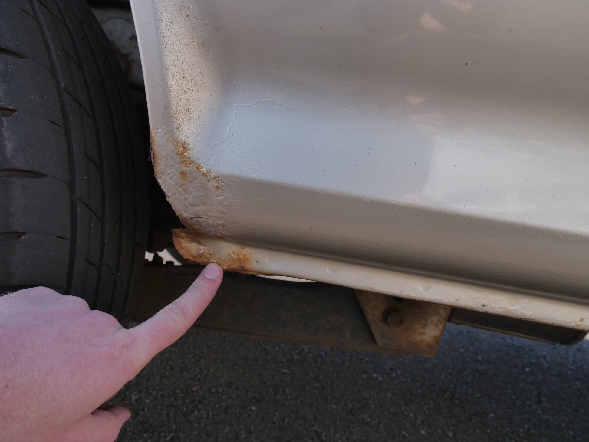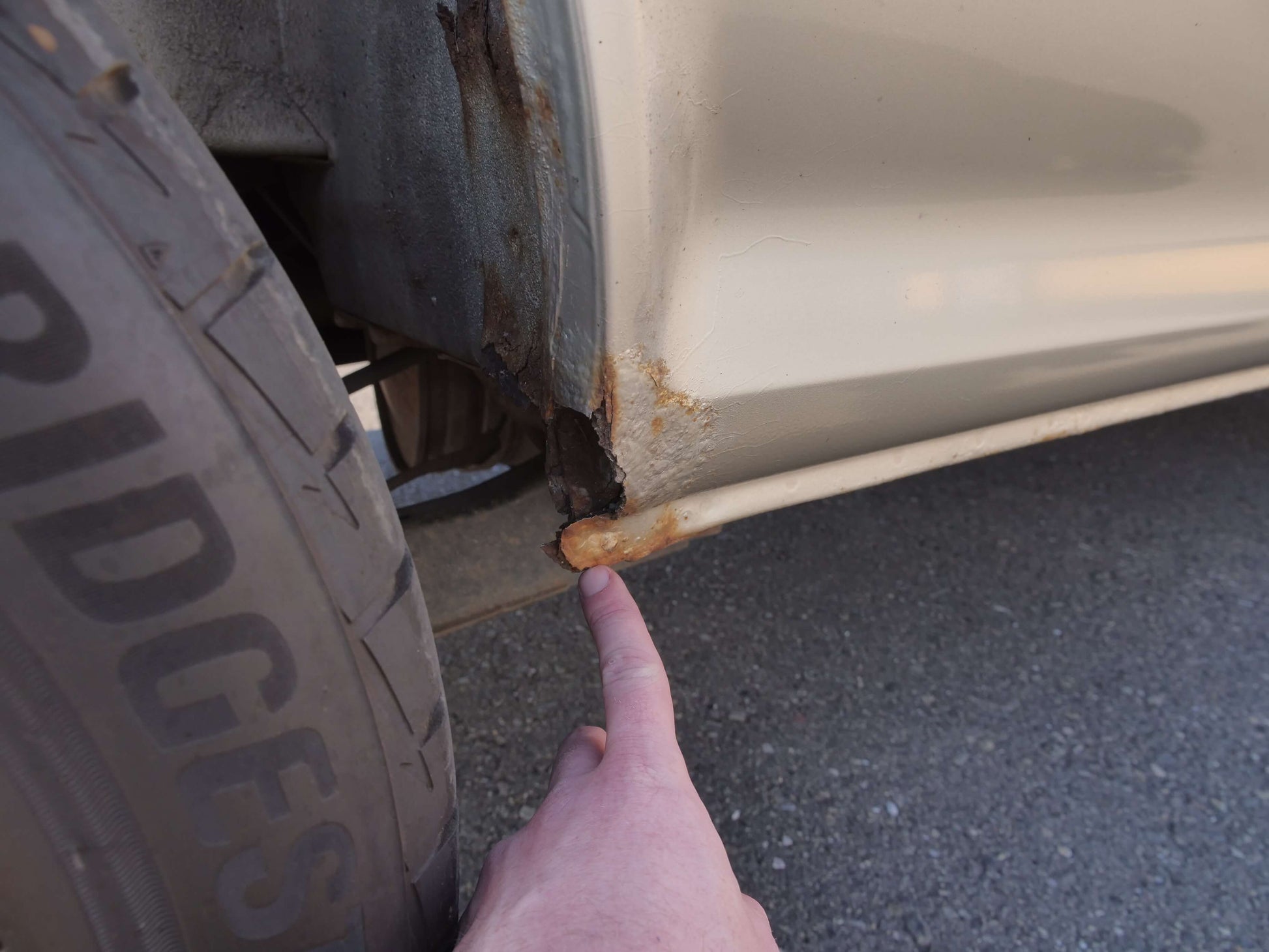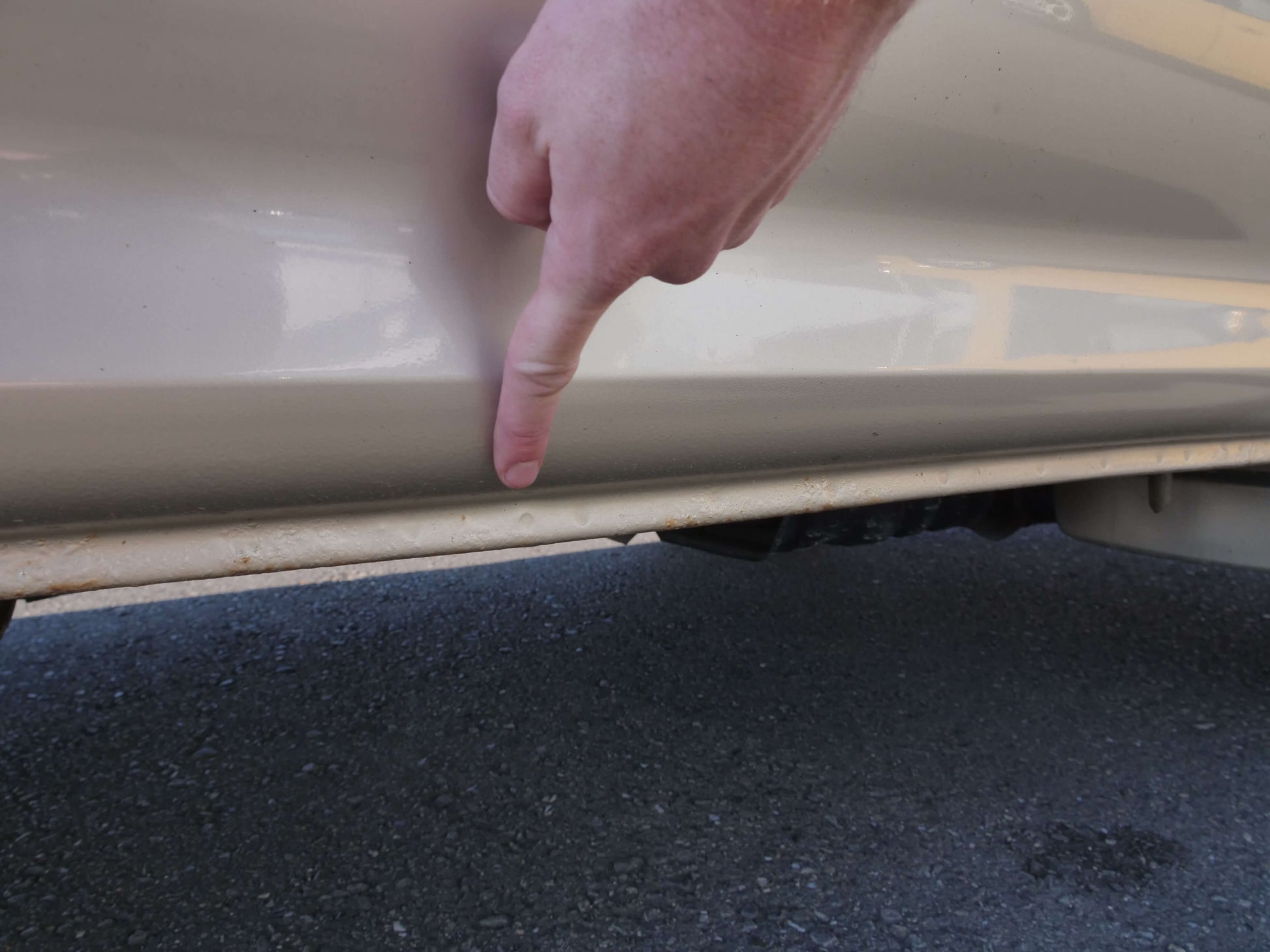 We intend to properly repair and repaint the patch of rust in front of the right rear wheel and along the lower right side, see pics.