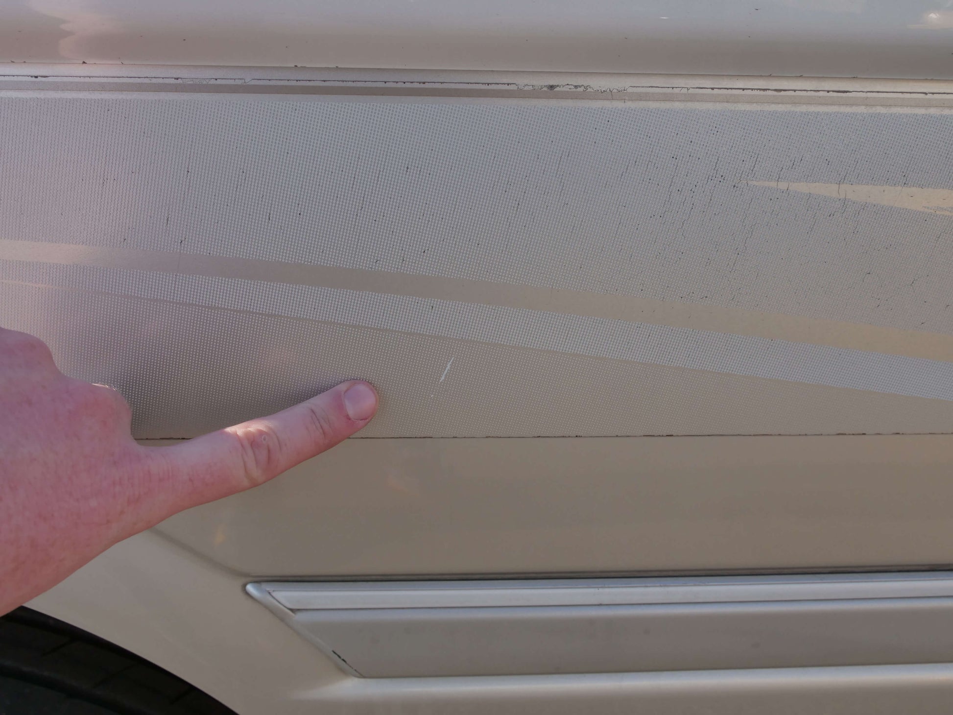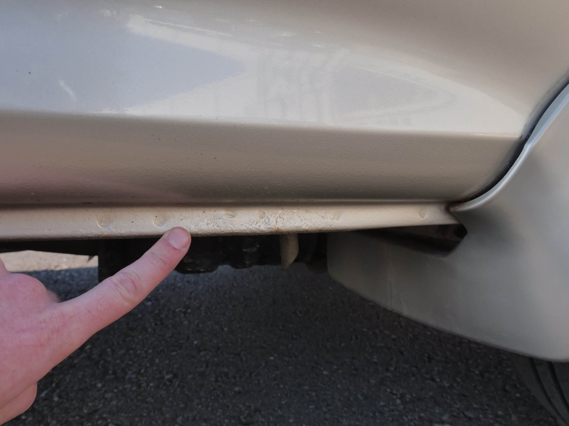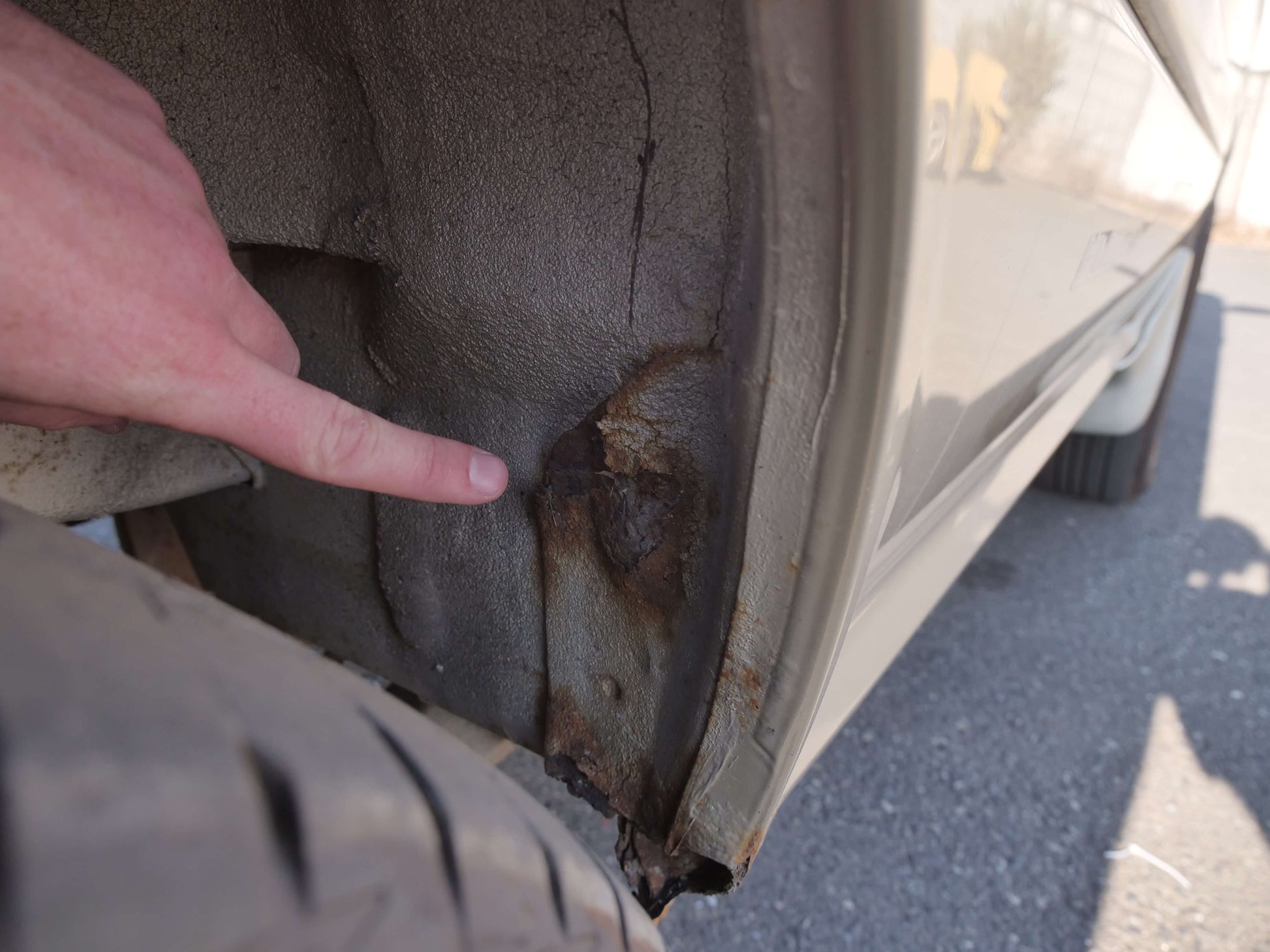 We intend to properly repair and repaint the patch of rust in front of the right rear wheel and along the lower right side, see pics.